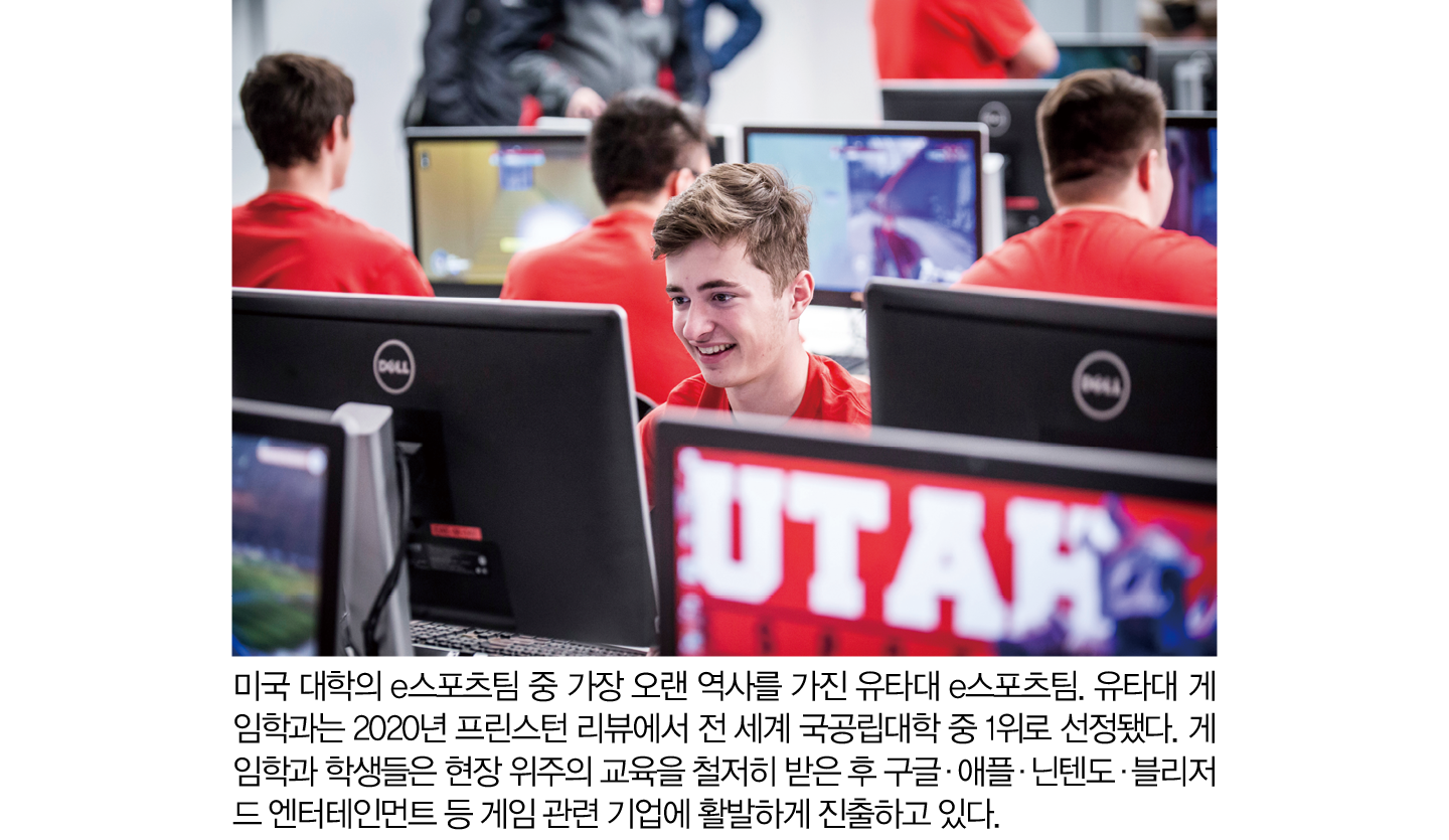 게임학과의 정식 명칭은 엔터테인먼트 아트 엔지니어링학과다. 유타대는 미국 대학 최초로 e스포츠팀을 만든 학교다. 2007년 컴퓨터학과와 영화영상학과가 함께 만들어낸 학과다. 1학년 때 컴퓨터 프로그래밍을 배우기는 하지만 저명한 작가가 스토리와 캐릭터를 착안하고 발전시키는 과정을 강의하는 등 스토리 개발과 캐릭터 창조에 좀 더 무게를 두고 융합형 인재를 양성하고 있다.작년 10월 미국 캠퍼스를 방문해 게임학과 학과장을 만났는데 팀 협업을 강조하는 교육과정이 인상적이었다. 스토리를 만드는 학생, 비주얼을 담당하는 학생, 코딩을 짜는 학생, 음악을 입히는 학생 등이 한 테이블에서 한 팀을 이룬다. 그렇게 여러 테이블에서 여러 팀으로 다양한 경험을 하며 졸업 전까지 게임을 출시한다. 졸업생들이 출시한 게임은 실습실 콘솔에 모두 있으므로 학생들이 선배들의 게임을 직접 해볼 수 있다.유타대 아시아캠퍼스에서도 똑같은 교육과정을 운영하며 테이블별로 팀을 짜서 협업하도록 할 예정이다. 신문방송학과, 영화영상학과와 함께 e스포츠 방송도 생각하고 있으며 정보시스템학과와의 시너지도 기대된다. 한국은 게임 산업이 매우 발달해 있어서 미국 캠퍼스 학생들의 관심도 높다.