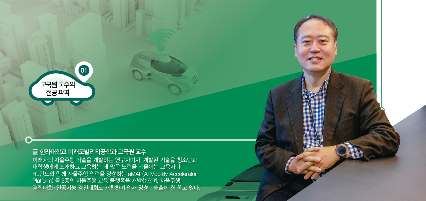 박사학위 취득 후 벤처 기업을 택했습니다. 같이 연구했던 대기업에 취업할 수 있었고 복지·급여 등의 장점도 많았지만, 전공을 살리면서 새로운 일에 계속 도전하고 싶어 ‘미래산업’이라는 기업의 연구소를 선택했죠. 한데, 구조조정으로 팀이 없어지고 대학으로 이직했습니다. 사실 교수라는 직업에 대해 전혀 관심이 없었습니다. 하지만 계속 도전을 하면서 후학도 양성할 수 있다는 점이 새로운 길을 결심하게 했죠. 수도권 대학, 비수도권 대학을 놓고 고민했는데, 중하위권 대학에 진학하는 학생들의 역량을 키워 산업계에서 필요한 ‘허리 인재’로 만들겠다는 목표를 가지고 한 충청권 대학의 자동차공학과에서 교수의 길을 걷게 됐습니다. 로봇과 인공지능을 주로 연구해온 제가 자동차공학과 교수가 된 배경에는 박사 학위를 받기까지 4차 산업혁명의 핵심 기술을 섭렵한 점과 더불어 취미 생활의 역할도 적지 않았습니다. 학업 스트레스를 해소하려 자동차 경주 선수로 활동했거든요. 운전의 재미도 컸지만, 내가 배운 기계공학이 어떻게 자동차에 적용되는지 직접 실험하고, 자동차 개조도 직접 하고 싶어 선택한 취미였어요. 실제 자동차에 센서를 달아 계측·분석하며 일과 취미를 연동, 자기 발전을 계속하기도 했죠. 맨 처음 말했듯 제가 현재 몸담은 모빌리티 분야는 숨겨진 역량을 발굴해 성장시키며 새로운 가치를 창조할 수 있어야 합니다. 처음으로 돌아가자면 저는 가장 원했던 길은 아쉽게 비껴가고 첫 시연에서는 실패를 거듭한 ‘불운’한 사람이지만, 동시에 운 좋게 좋은 팀에 합류하거나 어렵고 새로운 기술을 앞장서 배울 기회를 얻은 ‘행운’ 가득한 사람이기도 합니다. 불운과 행운 사이, ‘가슴을 설레게 하는 것을 찾아내고’ ‘최선을 다해 즐기고 몰입한’ 덕분에 저는 농기계공학과 학생에서 ‘인공지능·자율주행 전문가’라는 현재에 다다를 수 있었죠. 즉, 학생들은 지금 혹은 눈앞의 일로 앞으로의 많은 시간을 미리 결론짓지 마세요. 자신의 가능성도 섣불리 단정하지 않길 바랍니다. 특히 지금 세상은 4차 산업혁명의 핵심 기술로 빠르게 변하고 있답니다. 지금 여러분들이 아는 대학 교육과 직업 역시 크게 달라질 겁니다. 학생들 누구나 무궁무진한 가능성이 있습니다. 변화를 읽는 눈을 키우고 자신의 새로운 능력과 가치를 찾는다면 기회를 잡을 수 있죠. 앞으로 지면을 통해 이를 도우려고 합니다. 세상을 바꾸는 신기술, 그리고 그에 맞춰 바뀌(어야 하)는 대학 교육과 산업·직업에 대해 제가 몸담고 있는 자동차 분야를 중심으로 함께 살펴봅시다.