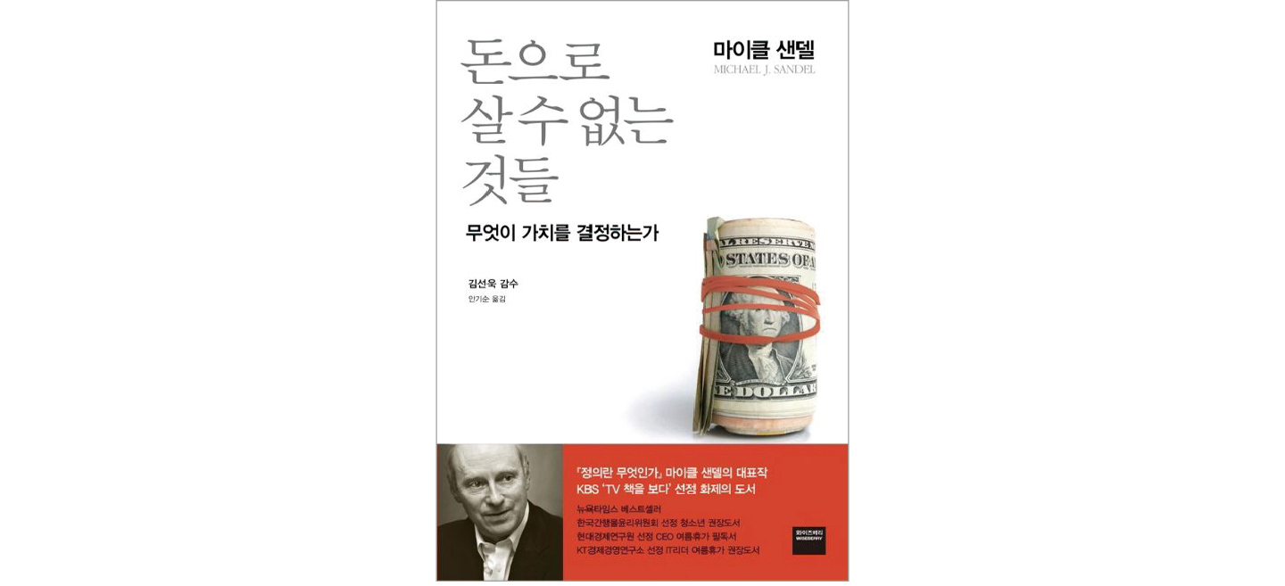이미지확대 돈으로 살 수 없는 것들 지은이 마이클 샌델 펴낸곳 와이즈베리 어렵고 힘겨웠지만 원서로 읽은 책입니다. 외대 면접에서도 교수님이 ‘얼마나 소화해냈느냐’며 궁금해하시더라고요. (웃음) 책은 시장 우선주의의 선호로 인해 도덕적 가치가 결여됐을 때 나타나는 문제점을 지적해요. 그러면서 가격을 매길 수 없는 도덕적이고 철학적인 가치를 가진 것들이 있다는 걸 스스로 자각해야 한다는 묵직한 메시지를 던지죠. 이 책을 읽고 ‘가치 있는 경제 활동이란 과연 무엇인가’를 생각해보게 됐어요. 멸종위기 종을 사냥하는 권리를 경매로 판매하고, 놀이공원에서 대기 줄을 건너뛰는 패스를 구매하는 행위가 과연 옳은가, 또 모든 것을 상품화하는 세상에서 인간의 존엄성을 어떻게 지켜낼 수 있을까 등 정답 없는 질문을 독자에게 던지죠. 쉽지 않지만, 읽고 나면 한 뼘 성장한 자신을 발견할 수 있을 겁니다.